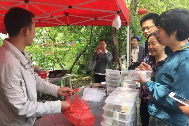 慢城的蒸糕看起來很不錯,敬一丹也很喜歡,買了幾份,和隨行的人們一起分著吃了,小編也嘗到了一個,香、軟、糯!