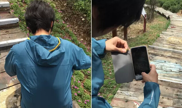 走著走著,敬一丹停了下來,開始對著棧道拍攝,她在拍什么呢?