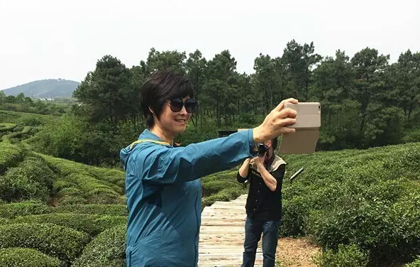 來茶園不采茶豈不可惜?敬一丹也扮演了一回采茶姑娘,看著手勢,很專業啊!