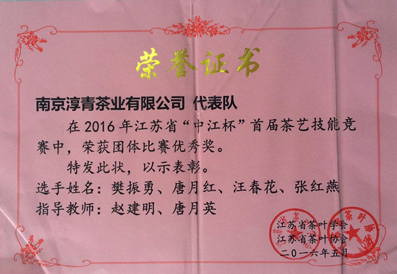 淳青茶業(yè)榮獲江蘇首屆茶藝技能競(jìng)賽團(tuán)體及個(gè)人比賽優(yōu)秀獎(jiǎng)