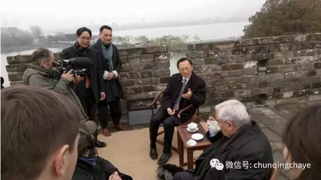 3月23日上午11時,法國前總理拉法蘭在市長繆瑞林陪同下,在臺城游覽明城墻,講述明文化小憩,市長拉法蘭介紹由淳青茶業選送的今春diyi批茗品,供外事接待用茶。